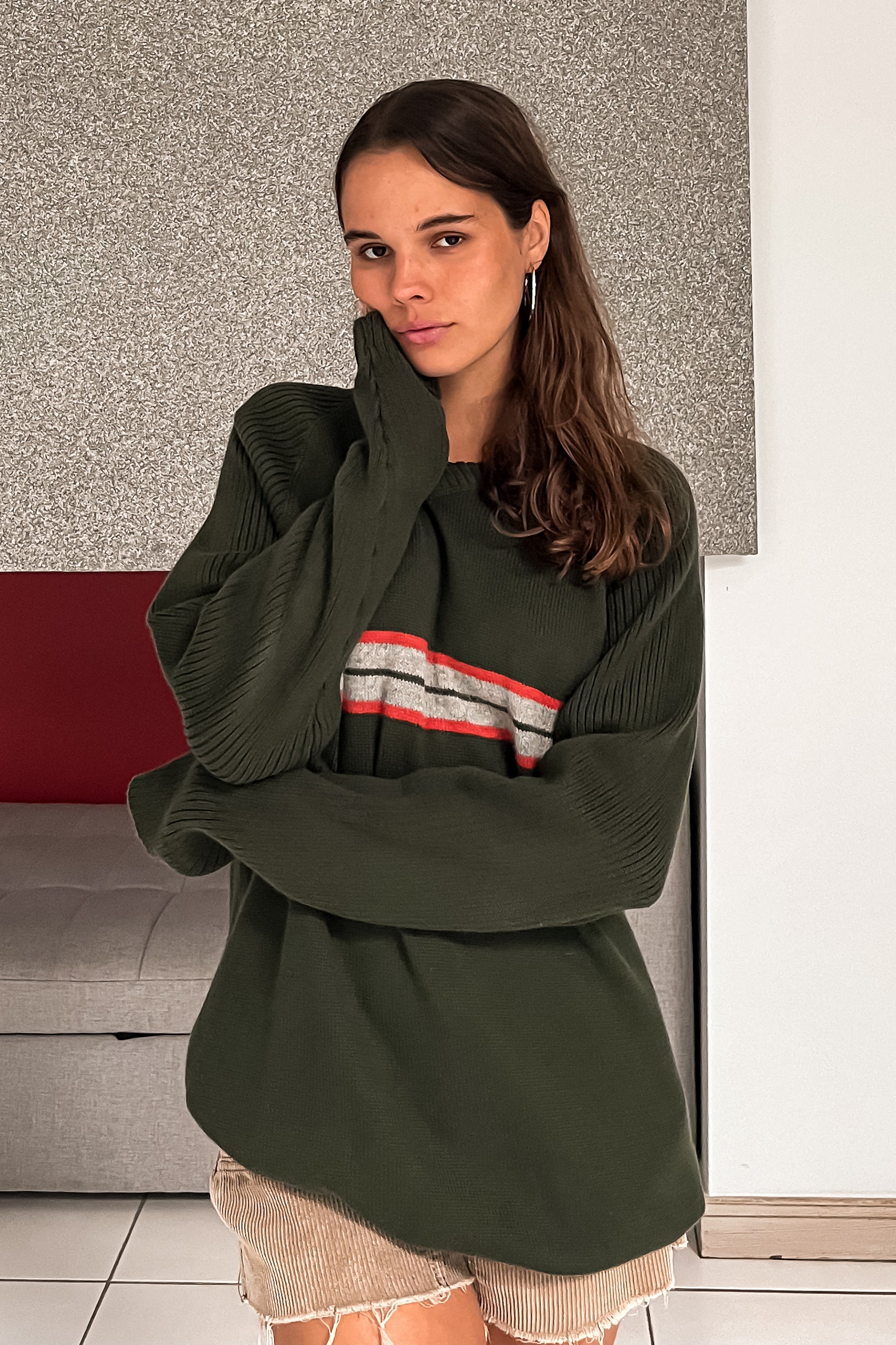Introducing the CANES CLASSROOM VINTAGE SWEATER! This Tommy Hilfiger 90's V neck sweater features a comfortable stretchy fabric for a good oversize fit. Made with 100% cotton, and the Hilfiger label intact, this vintage piece fits sizes S-L. Stay warm this semester, Miami AC's are very cold!